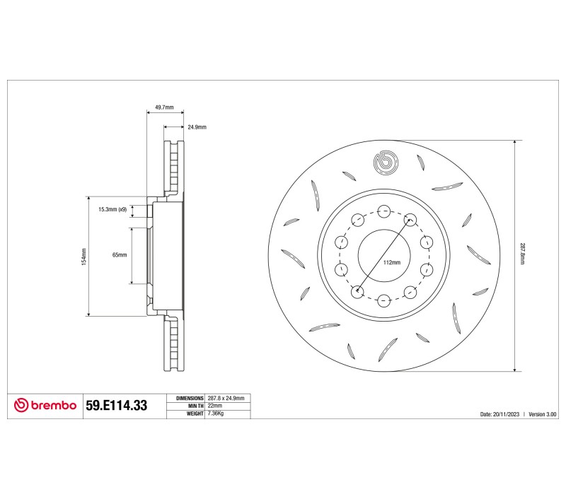 Brembo Disco de freno deportivo TY3 59.E114.33 delantero
