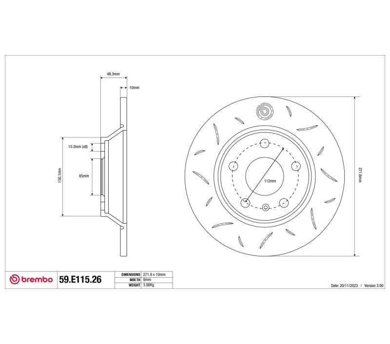 Brembo Disco de freno deportivo TY3 59.E115.26 trasero