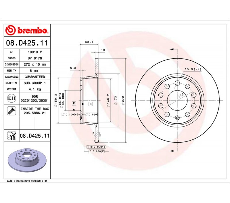Los discos 08.D425.11 Brembo es sinónimo de fiabilidad