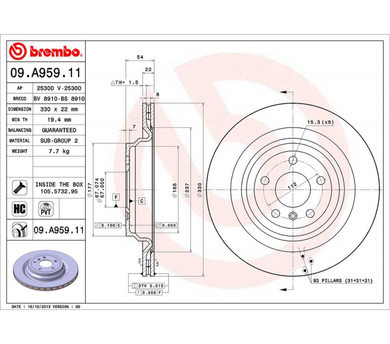 Los discos 09.A959.11 Brembo es sinónimo de fiabilidad