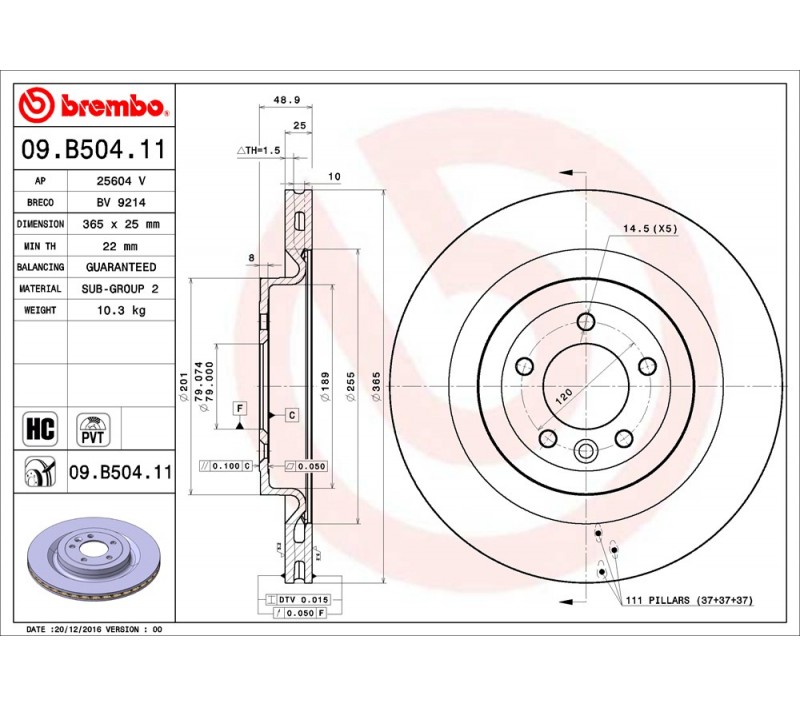 Los discos 09.B504.11 Brembo es sinónimo de fiabilidad
