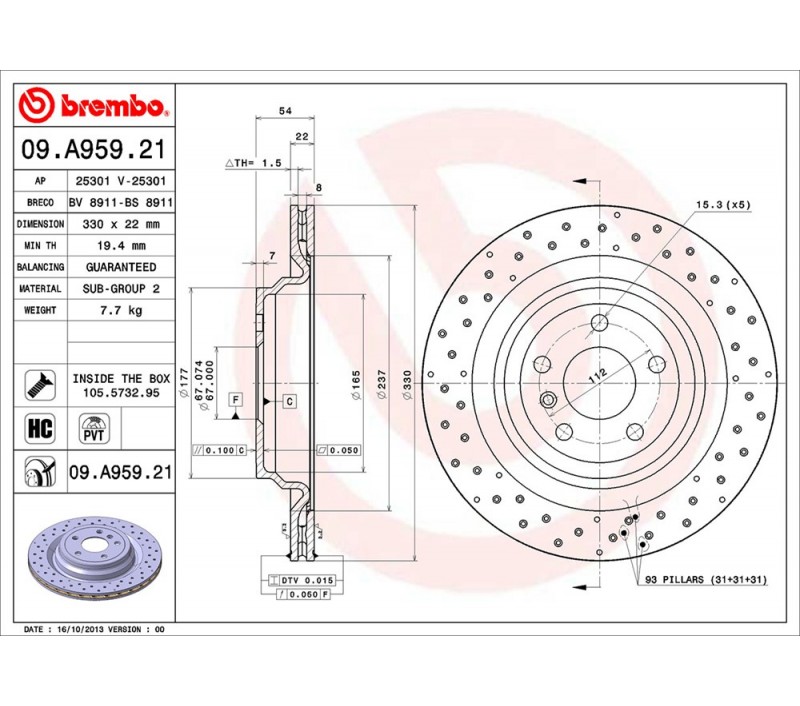 Los discos Brembo 09.A959.21 es sinónimo de fiabilidad