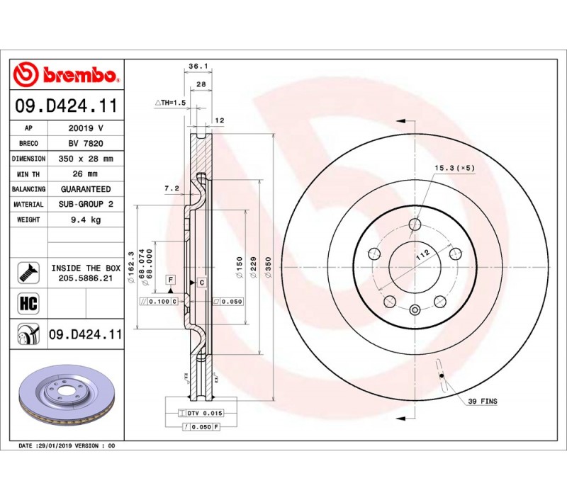 Los discos 09.D424.11 Brembo es sinónimo de fiabilidad