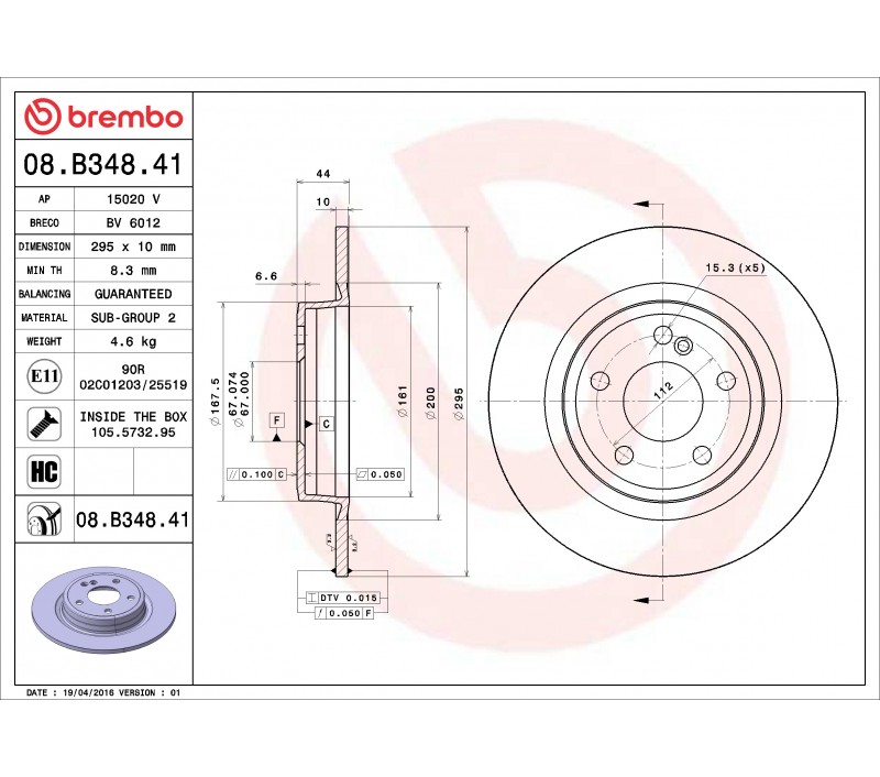 Los discos 08.B348.41 Brembo es sinónimo de fiabilidad