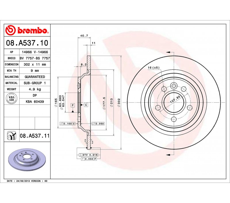 Los discos 08.A537.11 Brembo es sinónimo de fiabilidad