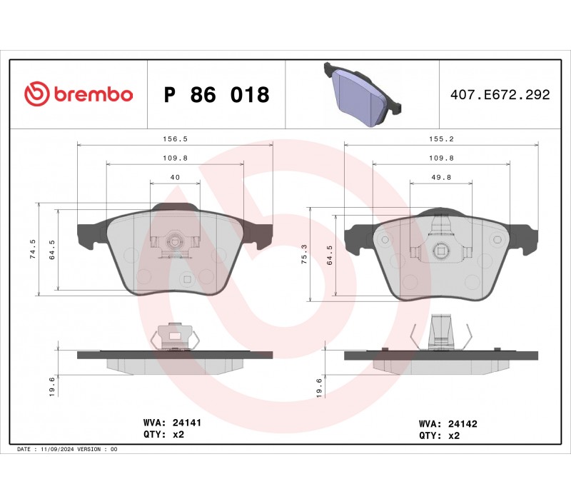 Distancias de frenada mínimas, máximo confort de conducción y silenciosidad son las características más destacadas de los materiales Brembo. Las pastillas Brembo se suministran con una amplia gama de accesorios y kits de montaje para lograr una instalación perfecta
